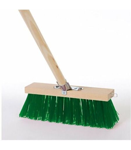 Balai emmanché en bois de hêtre ciré Spécial sols béton ou goudronnés Brosse en fibre PVC vert Douille métallique ...