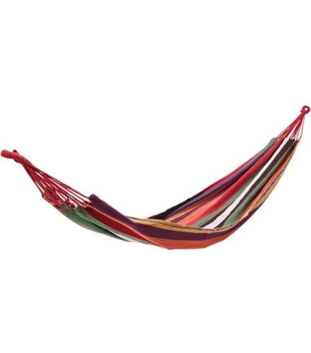 Coloris bayadère. Toile 100% coton. 200x76cm. 9 serpentes à chaque extrémité. Poids maximum supporté 120kg. Housse avec autobloquant. Poids : 830g. ...