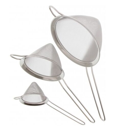 Un set de passoires parfait pour filtrer vos préparations 3 ustensiles tout acier inoxydable Tamis moyen sur chaque passoire Rebord latéral additionnel : usage facile Manches larges - Suspension idéale 3 tailles différentes : 8, 12 et 16cm de diamètre ...