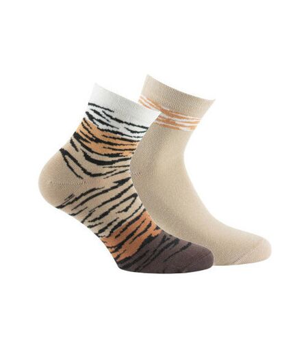 Chaussettes Kindy Lot de 2 paires de socquettes en coton fantaisie zébrures Beige