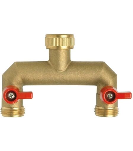 Nez de robinet rapide mâle 2 voies avec manettes sélection de voies. Muni de 2 mini vannes d'arrêt. Pour connecter plusieurs départs. Raccord en laiton : robustesse, résiste au gel, résiste aux UV. Manettes en métal. Entre axe idéal pour installation d'un programmateur. ...