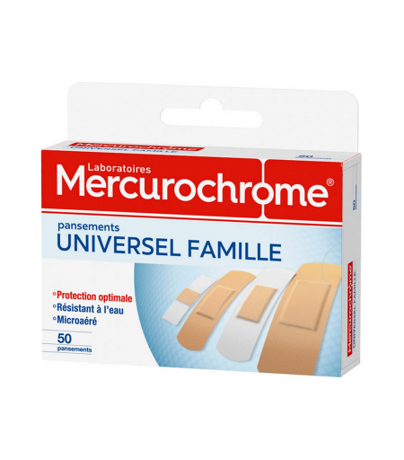 Parapharmacie > Hygiène & Premiers soins > Premiers soins Mercurochrome Pansements Universel Famille x 50 - Premiers soins - Pharmacie en ligne LaSante.net