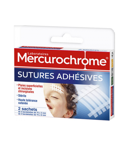 Parapharmacie > Hygiène & Premiers soins > Premiers soins Mercurochrome Strips Sutures Adhésive x 16 - Premiers soins - Pharmacie en ligne LaSante.net