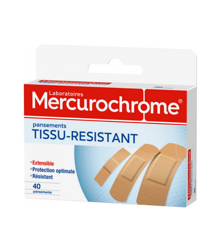 Parapharmacie > Hygiène & Premiers soins > Premiers soins > Pansements Mercurochrome Tissu Résistant 40 Pansements - Pansements - Pharmacie en ligne LaSante.net