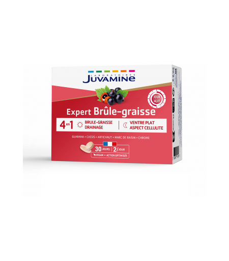 L'Expert Brûle Graisse 4-en-1 agit le jour et la nuit pour une action globale et optimisée en fonction du rythme de votre organisme. Formule 4-en-1 grâce à ses actifs connus pour leurs propriétés minceur et détox. Action jourBrûle-graisse : le guarana contribue à la dégradation et l'oxydation des graisses, ainsi qu'au contrôle du poids.Drainage : le cassis contribue aux fonctions d'élimination de l'organisme et favorise le drainage. Action nuitVentre plat : l'artichaut aide à la digestion et contribue au confort intestinal. Ce confort favorise ainsi le maintien d'un ventre plus plat. L'artichaut contribue également aux fonctions d'élimination de l'organisme. Le chrome contribue au métabolisme normal des macronutriments comme les sucres et les graisses.Aspect cellulite : le marc de raisin aide à réduire l'aspect cellulite. Vegan - convient aux végétariens, aux végétaliens et aux vegans. Fabriqué en France en Lorraine. Engagement - Étui recyclable ...