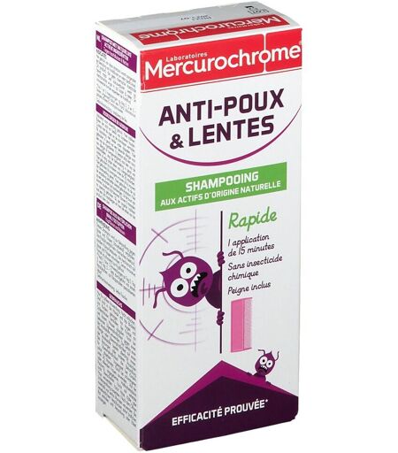 Mercurochrome Shampoing Anti-Poux & Lentes Actifs d'Origine Naturelle Shampooing 125 ml