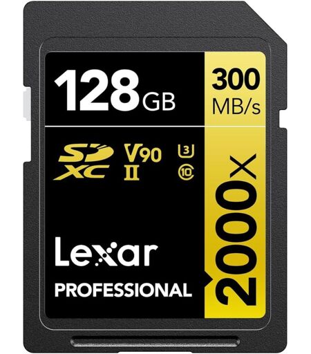 Lexar SUBZONAL-Professional 2000x Carte SD 128Go, Carte mémoire SDXC UHS-II sans Lecteur, Jusqu'à 300 Mo/s en Lecture, pour DSLR, caméras vidéo en qualité cinéma (LSD2000128G-BNNAG)