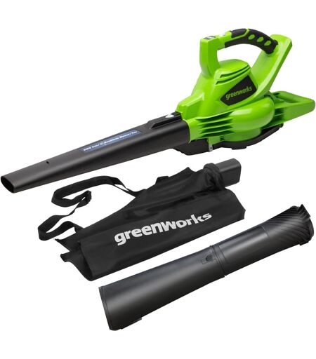 ASPIRATEUR ET SOUFFLEUR PUISSANT ET LÉGER AVEC VENTILATEUR DE BROYAGE - Puissant ventilateur, avec moteur sans balais silencieux et à faibles vibrations. Élimine les déchets de jardin humides ou secs ou aspire les feuilles sèches et les broientMOTEUR SANS BALAIS SILENCIEUX - conçu pour réduire la friction pour plus de puissance, d¿efficacité, de silence et une durée de vie plus longue. 6 réglages de vitesse pour déplacer les débris tenaces et balayer les feuilles autour des plantes délicatesPASSER FACILEMENT DU SOUFFLEUR À L'ASPIRATEUR - pour passer du soufflage à l¿aspiration des feuilles, déclipsez le tube du souffleur et remplacez-le par celui du broyeur. Les feuilles sont finement broyées, collectées dans le sac et prêtes pour le compostUTILISER TOUTE BATTERIE GREENWORKS 40V 2Ah ou 4Ah - pack spécial « outil seul » livré dans batterie. Si vous possédez déjà des outils Greenworks 40V, utilisez les mêmes batteries pour gagner de la place, réduire les coûts et les déchets3 ANS DE GARANTIE - Achetez Greenworks, un leader mondial de l'outillage électrique et de la technologie des batteries, réputé mondialement pour ses conceptions intelligentes, ses hautes performances et son service client exceptionnel ...