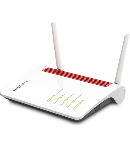 Internet rapide avec des débits atteignant les 150 Mbit/s via la téléphonie mobile LTE ou UMTS ; très flexible grâce à la prise en charge du multibande ; utilisable dans toute l'EuropeTéléphoner en toute aisance directement via le numéro mobile de la carte SIM (VoLTE), avec jusqu'à six téléphones sans fil (DECT), 10 téléphones IP ainsi qu'un port pour un téléphone analogique ou un télécopieurRéseau domestique haut débit pour tablettes, ordinateurs portables, PC et smartphones ; quatre ports LAN Gigabit ultrarapidesWi-Fi 5+4 ultraperformant pour une portée et une vitesse maximales (jusqu'à 1266 Mbit/s), avec tout le confort du Mesh Wi-FiTéléphoner en toute aisance avec jusqu'à six téléphones sans fil (DECT), 10 téléphones IP, port pour téléphone analogique; Mise à disposition de films et de photos via le serveur multimédia intégré (USB 3.0, NAS)Contenu du pack : FRITZ!Box 6850 LTE, bloc d'alimentation, antennes LTE externes, câble Ethernet d'1,5 m, guide d'installation ...