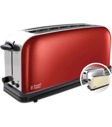 Russell Hobbs SUBZONAL-Grille Pain Fente extra large et longue 2 Toasts/ 1 Tranche baguette Colour+ Rouge (6 Niveaux de Brunissage rapide, Surélévation, Décongèle & Réchauffe, 1000W) Toaster 21391-56