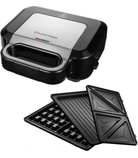 Russell Hobbs SUBZONAL-Appareil Croque Monsieur Multifonction 3en1 Creations (extra profondes pour sandwich épais, gaufrier, panini, 3 plaques antiadhésives & sans BPA, nettoyage facile) 26810-56