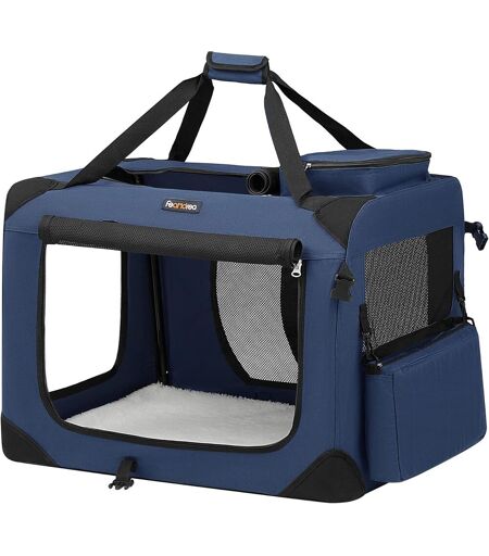 Feandrea Subzonal-Sac Transport Chat Chien, Caisse Pliable Animaux De Companie, Taille L, Tissu Oxford, Filet, Respirant, Portable, Cadre En Métal, Avec Poignées Et Pochettes, 70 X 52 X 52 Cm, Bleu Foncé