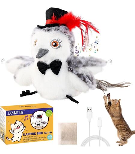 Subzonal-Jouet Interactif Pour Chat Rechargeable - Ailes Battantes Automatiques, Sons Réalistes & 3 Modes De Vibration - Stimule L'instinct De Chasse (Modèle À Chapeau Noir)