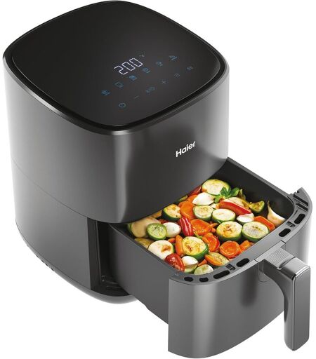 Haier SUBZONAL-Air Fryer Compact 5L, 4-6 personnes, Ecran Tactile Digital LED, 6 Programmes 80-200°C, Friteuse sans huile, Cuisson à l'Air Chaud, Rôtissage, Gril, Décongélation, Gris