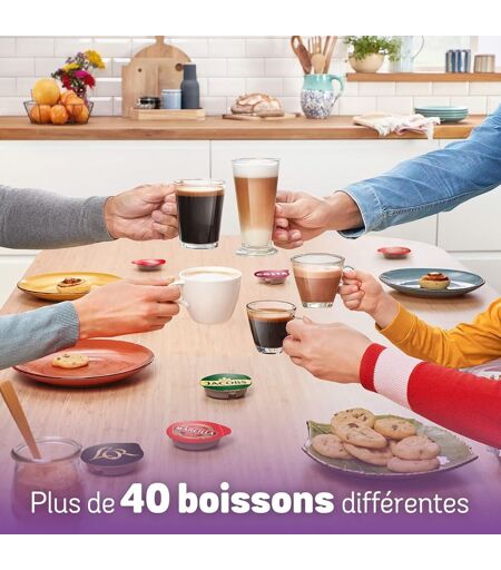 Multi boissons : Profitez d'un large choix de préparations, plus de 40 spécialités de boissons avec un système à dosetteUne boisson irrésistible : Préparez de savoureuses boissons chaudes comme un barista à la maison grâce à INTELLIBREWFacile d'utilisation avec son bouton unique de commande : ""Un seul clic et c'est prêt"" avec OneTouchAjoutez votre touche personnelle : Réglez l'intensité, la température et la taille de votre café ; jusqu'à 4 réglages individuels peuvent être enregistrés dans la fonction mémoireUn plaisir durable : La technologie de filtration de l'eau BRITA MAXTRA+ sublime le goût de votre boisson ; un filtre inclus ...