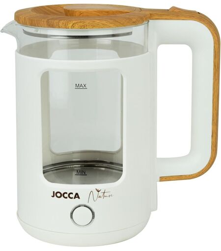 BOUILLOIRE ÉLECTRIQUE DE 1,8 LITRE DÉCONNEXION AUTOMATIQUE une fois le point d'ébullition atteint DESIGN MODERNE ET ELEGANT : la gamme Nature de JOCCA se compose d'un grille-pain, d'une friteuse, d'une bouilloire, d'une machine à sandwich, d'un presse-agrumes et d'une cafetière. Vous pouvez ainsi combiner votre cuisine avec un design élégant, naturel et moderne. FACILE À NETTOYER ET À UTILISER grâce à son matériau en verre borosilicaté et à sa résistance cachée dans la base du produit. Base pivotante à 360º avec cordon de 0,75 mètre ...