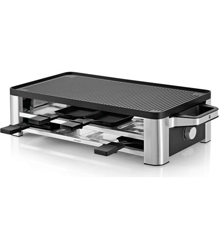 Wmf SUBZONAL-Appareil à raclette multifonction, 1500W, Inox 18/10 Cromargan, Grill, Crêpière, 8 Personnes, Température réglable, Plaque en fonte réversible, Haute puissance, Lono 0415040011
