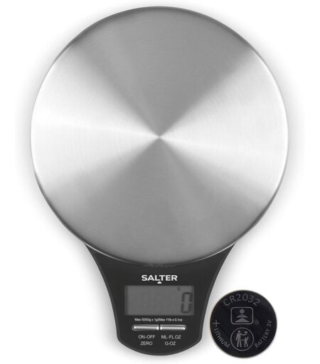 Salter SUBZONAL-Balance de Cuisine Numérique en Acier Inoxydable, Pèse Aliments et Liquides, Capacité 5kg, Fonction Ajouter et Peser, Affichage LCD Facile à Lire, Batterie Incluse, Garantie 15 Ans