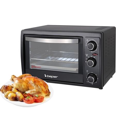 Beper SUBZONAL-90.884 Four Électrique Ventilé, 1300 W, 30 Litres, Double Verre trempé, 4 fonctions de cuisson, Noir