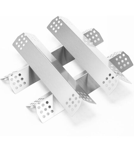 Compatibilit Remplacement de plaque chauffante pour Campingaz, Bingo 5, Landmann, Barbecook Siesta, Enders, Taino Red / Pro, ProfiCook, Tarrington House, Burnhard Fred-Serien, Beefeater 3 grill.Veuillez noter Les marques de gril compatibles sont titre indicatif uniquement. S¿il vous plat assurez-vous que notre produit s¿adapte votre gril avant de passer commande.Dimensions37x 8.6CMPackage4 Pack Diffuseur de flamme.Matriel Excellente finition de surface, tous en acier inoxydable robuste au lieu d¿acier doux, passe le test non magntique, sr, sain et haute rsistance.Fonction Protger les brleurs et prvenir les pousses, crer une saveur fabuleuse en vaporisant les gouttes et les graisses.Conception unique Bien construit et bonne paisseur. La temprature maximale s¿est amliore ainsi que la rpartition de la chaleur sur le gril tant plus uniforme en raison des trous aux extrmits des barres qui concident souvent avec la zone o le brleur est absent.Nettoyage sans tracas Surface lisse pour un nettoyage antiadhsif, facile et lavable au lave-vaisselle.Grande valeur Fonctionne aussi bien que les produits de marque, mais moiti prix, 2 ts d¿utilisation ne posent aucun problme. ...