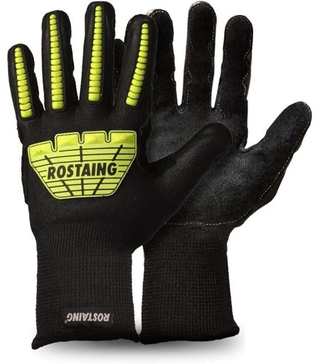 Rostaing ASFASFq-RESCUEPRO - Gants de Chantier Pour Gros Travaux Intensifs - Avec Renforts Jaune Fluo Pour Bricolage - Anti-Coupure et Protection des Chocs