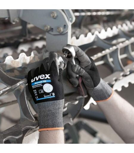 Gants de travail Taille: 6 Uvex phynomic XG 6007006 1 pc(s)Paume et bouts des doigts avec revtement en mousse Aqua-Polymer Xtra Grip robuste et rsistant l'abrasion.1 paire de gants de travail conformes la norme EN 388 (4 1 2 1 X), sans substances nocives conformment la norme -Tex Standard 100.Fabriqu en Allemagne - Ces gants de montage de qualit sont fabriqus dans les ateliers allemands Uvex.Parfait pour une utilisation sur le chantier, dans l'atelier, lors du montage, dans le jardin ou en entrept. ...