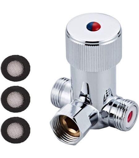 Matriau en laiton sans plomb, utilis pour le et capteur automatique froid uniquement et le chauffage solaire.Les clapets anti-retour intgrs sont efficaces pour viter le reflux d'eau froide et chaude.Vanne mlangeuse froide et chaude, ajustez la temprature, ne disposez pas de la fonction d'arrt et d'arrt.Ch plaqu, installation facile, eau froide et chaude dans la connexion est G1 / 2 mle, la sortie d'eau est la connexion G1 / 2 Femelle.Garantie de cinq ans pour l'utilisation familiale. ...