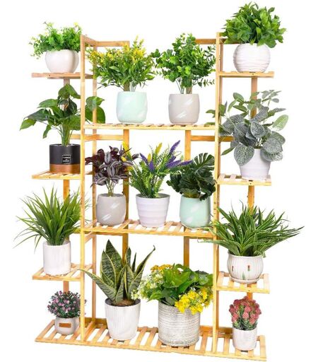 TAGRE FLEURS 6 NIVEAUX - - Cette tagre fleurs en bois 9 niveaux offre pleine d'espace pour les plantes, les fleurs, les herbes ou les dcorations. Grace aux tagres en hauteurs diffrentes, vous pouvez placer des plantes de diffrentes tailles ou de diffrents types. L'apparence simple et la couleur naturelle conviennent presque toutes les scnes d¿utilisation comme le salon, le jardin, la terrasse, le balcon, l'entre, le couloir, le coin, l'htel, le bureau, etcGAIN DE PLACE - - Le support de fleurs vertical peut tre plac l¿endroit vous voulez en conomisant de l'espace et rangeant la pice, chaque plante peut recevoir suffisamment de lumire du soleil pour favoriser la croissance saine des plantesESPACE GNREUX - - Cette echelle de plantes plusieurs tages a cre de l'espace pour 14 plantes diffrentes et diffrents types de fleurs. Les niveaux latraux peuvent supporter jusqu' 10 kg, les niveaux au milieu peuvent supporter jusqu' 15 kg et les niveaux infrieurs peuvent supporter jusqu' 20 kgMATRIEL DE QUALIT - - Fabriqu en matriel de haute qualit, lisse et sans bavure, anti-moisissure, impermable et facile nettoyer, Convient pour une utilisation l'extrieur ou l'intrieur, Ce porte plante bambou est suffisamment robusteINSTALLATION FACILE - - Livr avec un notice d¿installation clair vous bien facilitera le montage. N¿hsitez pas nous contacter si vous avez de questions, nous vous rpondrons dans les 24h ...