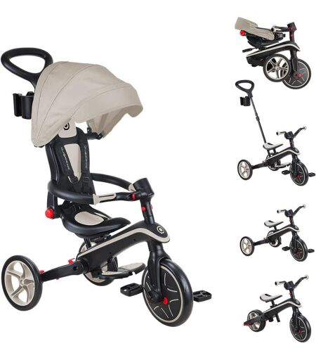 GLOBBER Asfasfq-Tricycle Explorer 4 En 1 - Tricycle Pliable Et Évolutif En Draisienne Pour Les Tout-Petits De 10 Mois À 5 Ans - Taupe
