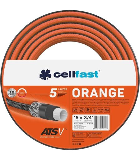 Cellfast ASFASFq-ORANGE ATSV Tuyau d'arrosage 5 couches - Résistant aux UV - Pression d'éclatement (3/4" 15 m) - 19-060 - Bleu
