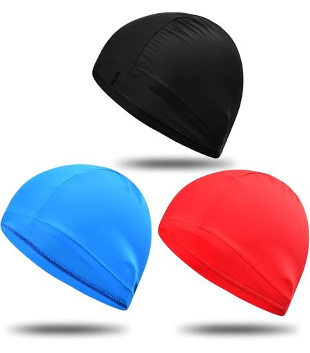 Asfasfq-3 Pcs Bonnets De Bain Pour Hommes Femmes, Bonnet De Piscine Tissu Polyester Élastique Et Confortable, Respirants Légers Antidérapant Bonnet De Natation Pour Cheveux Longs Courts Enfants Fille