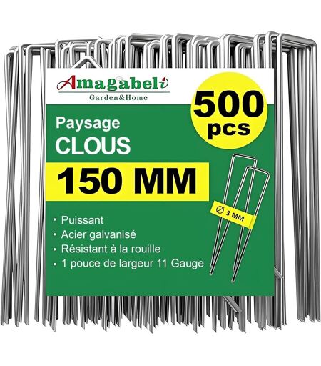 Asfasfq-Amagabeli Garden Home 500 Piquets De Jardin Pelouse Agrafe Toile De Paillage En Forme De U - 150 Mm Long - Ongles Mauvaises Herbes Tissu Piquets Galvanisé Piquet De Fixation En Acier Pour Bac