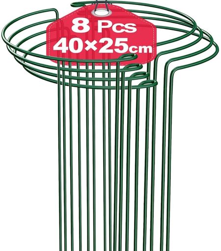 ASFASFq-Lot de 8 Tuteur pour Plante 25cm x 40cm, Aidez Vos Plantes à Pousser, Supports de Jardin en Métal, Anneau de Support de Plantes de Jardin Vert pour Pivoines Hortensias Roses Sédum Légumes Tom