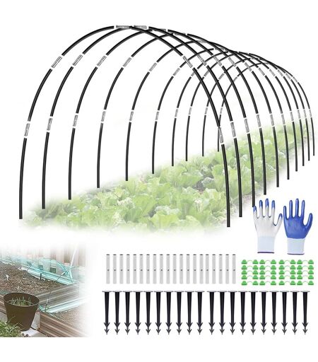 Ensemble tunnel de serre : ce produit contient 30 poteaux en fibre de verre d'une longueur de 38 centimtres, 16 piquets, 20 tubes de connexion et 20 clips de film de serre double face et une paire de gants.Matriaux de haute qualit : la couche extrieure en fibre de verre de l'arche du tunnel de jardin est recouverte de plastique, qui est flexible et ne se casse pas facilement. La conception amovible permet d'conomiser plus d'espace et peut tre rutilise.Arches de tunnel vgtal DIY : vous pouvez combiner plusieurs pneus pour construire votre propre tunnel vgtal. Vous pouvez raliser un pissage en 3 pices/un pissage en 4 pices/un pissage en 5 pices ou combiner plusieurs sections pour construire vous-mme votre propre tunnel vgtal. Vous pouvez utiliser des pinces pour maintenir le paillis de serre en place. Faites pousser des semis ou des fleurs sur des supports de jardin tout moment de l'anne.Large application : ces pneus de jardin peuvent non seulement tre utiliss comme pneus de jardin de couverture de ranges, mais galement comme support parfait pour les pentes de poulet ou les plantes grimpantes. Nos supports de jardin peuvent tre utiliss dans les plates-bandes surleves, les cours, les jardins, les vrandas et bien d'autres domaines.Facile assembler : Fourni avec des instructions faciles suivre (anglais). Insrez simplement un pneu de jardin dans le sol et connectez plusieurs pneus avec des connecteurs si ncessaire. ...