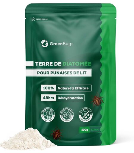 Asfasfq-Greenbugs Terre De Diatomée Punaises De Lit - 400g Poudre Non Calcinée Et Amorphe - 100% Naturelle Et Non Toxique - Haute Pureté Fabriquée En France
