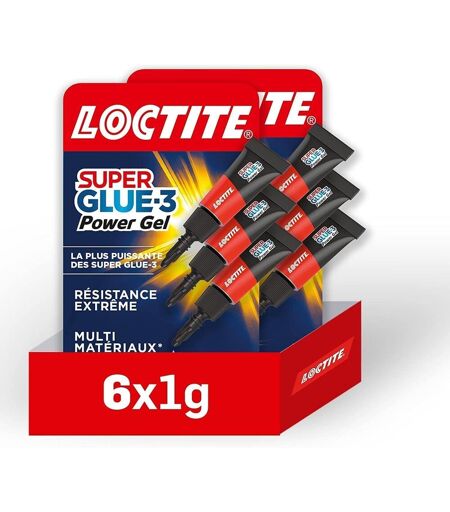 Format doses ¿ Ces six petits tubes de colle ont un format idal pour une utilisation unique pour toutes rparations de dernire minute. Ils sont dots d'un bouchon anti-schage auto-perceur.Enrichie en caoutchouc ¿ Cette colle flexible enrichie en caoutchouc collera en quelques secondes la majorit des matriaux, mme les plus souples, comme un tuyau !Colle rsistante ¿ La formule gel unique de cette colle extra forte la rend rsistante l'eau, aux chocs, aux vibrations, et aux conditions extrieures extrmes !Tous matriaux ¿ C'est la colle universelle qui s'adapte parfaitement sur la plupart des surfaces . Elle colle bois, caoutchouc, plastique, cuir, papier, etc.*Emballage ¿ Loctite Super Glue-3 Power Gel Mini Dose, colle cyanoacrylate gel enrichie en caoutchouc, colle forte tous matriaux, 6 mini-tubes de 1 g. ...