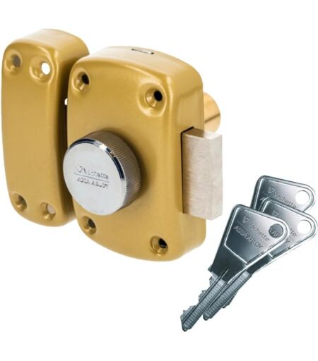 Vachette MEVRONISSHOP-Verrou de porte Bouton/Cylindre CYCLOP - Ouverture à Bouton intérieur, Clé extérieur - Cylindre ø 23 mm, Longueur 40 mm, 5 goupilles - 67600-40/SC - Anti crochetage - 3 clés