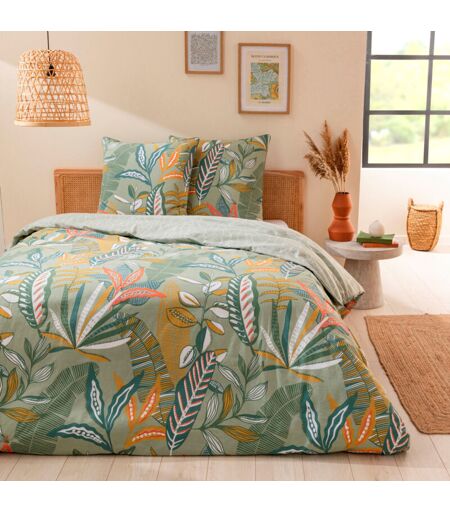 Future Home - Parure de lit 2 personnes en coton 57 fils imprimé vert 240x220cm