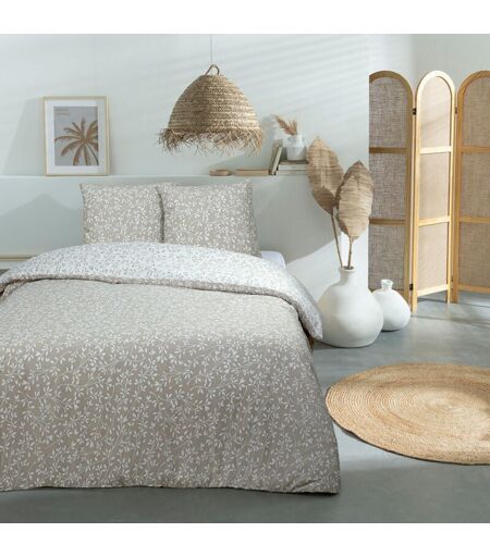 Parure de lit en microfibre réversible imprimé feuillage TERENCE comprenant 1 housse de couette + 2 taies d'oreiller 63x63cm Apportez une touche de nature et d'élégance à votre chambre avec la parure de lit Terence . Son design réversible et son imprimé feuillage dans des tons beiges et blancs insufflent une ambiance douce et apaisante à votre intérieur. L'équilibre subtil entre son motif végétal raffiné et sa palette naturelle crée un cocon de sérénité, idéal pour un espace de repos chaleureux. Les taies d'oreiller assorties viennent parfaire l'ensemble, apportant une touche harmonieuse et raffinée à votre lit. Conçue pour votre bien-être, la parure Terence est certifiée Oeko-Tex® et lavable en machine à 30° , garantissant un entretien facile et une excellente durabilité. Réalisée en microfibre lavée , elle offre un toucher effet peau de pêche ultra doux, procurant un confort absolu nuit après nuit. Laissez-vous envelopper par la douceur et le charme naturel de Terence , une parure ...