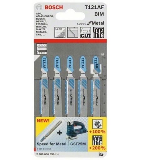 Bosch - lame de scie sauteuse special metal-t 121 af - nb de LAMES.5 - type de coupe.finition - pas MM.1,2 - long. utile MM.65 -