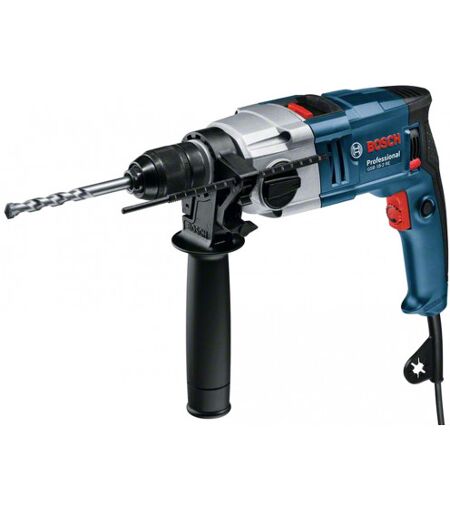 Perceuse à percussion Bosch GSB 18-2 RE est conçue à percer et visser à percussion • Elle est la plus rapide et la plus polyvalente dans sa classe • Elle est équipée du moteur efficace, à 2 vitesses, de puissance 800W, ce qui assure le rythme du travail optimal • La poignée est couverte du revêtement Softgrip qui facilite la prise en main et assure le contrôle de l'outil • La perceuse à percussion est adressée aux utilisations les plus dures • Le choix confortable de la vitesse rotative à l'aide de la manivelle pour le travail dans les matériels différents • L'embrayage Anti-Rotation garantit la haute sécurité du travail • Le carter solide en métal assure la longévité • Le diamètre du broche 43mm (la norme UE) permet de travailler aussir sur le support • La bonne prise en main Ce produit comprend • Butée de profondeur 210 mm • Poignée supplémentaire • Valise à outils • Mandrin de forage denté 13mm> ...