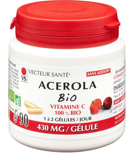 Vecteur Santé Acerola 100% bio sans sucres 90 gélules marines