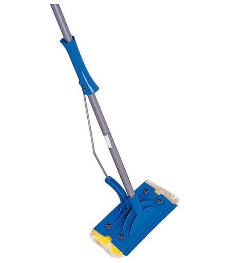 Balai lave sol manche métal laqué époxy, tête et poignée en polypropylène. Barre en fer zinguée. Eponge synthétique en polyuréthane expansé. ...