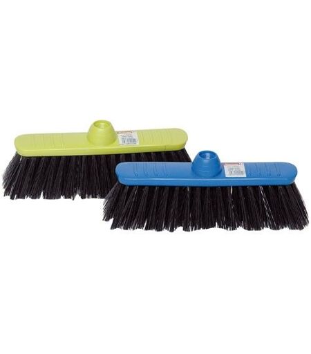 Balai avec fibre dure de THOMAS. - -Gamme : couleur Usage : spécial sols durs type ciment ou irréguliers, intérieur / extérieur Dimensions (L x l x hauteur) : 310 x 85 x 110 mm Dimensions monture en polypropylène (L x l) : 285 x 55 mm Poids : 0.350 Kg Coloris : assortis, selon arrivage Composition : fibre PVC ondulée noire Nombre de rangées de fibres : 6 Nombre de touffes : 90 Douille à vis intégrée dans la monture Produit vendu SANS MANCHE ...