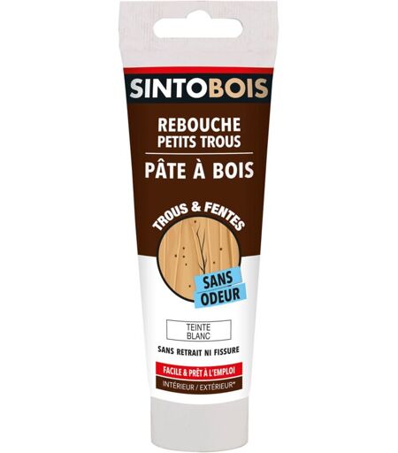 Pâte à bois pour reboucher imperfections et fissures 80g Blanc Sinto