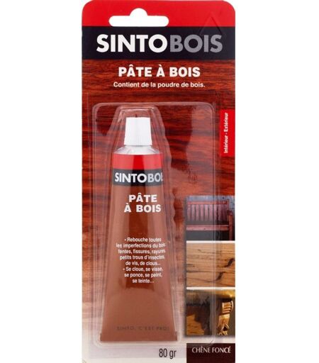 Sintobois rebouche imperfections Sinto - Chêne foncé - 80 g Pâte à bois prête à l'emploi pour la réparation de rayures, de fissures, trous de vers, éclats sur bois et dérivés Très facile d?application Accepte tous les types de finitions : vernis, peintures, lasures... Intérieur/extérieur Marque : Sinto Référence fournisseur : 235405 Gamme : Sintobois Type de produit : Réparation du bois Couleur : Chêne foncé Utilisation : Bois Environnement d'utilisation : Intérieur et extérieur Emission dans l'air intérieur : A+ Poids : Tube 80 g Conseils d'utilisation : Utiliser des gants de protection appropriés résistants aux agents chimiques conformes à la norme NF EN 374. Porter des lunettes de sécurité à écrans latéraux ou des lunettes étanches. Les protections oculaires doivent être conformes à la norme EN 166. En cas de fortes projections, porter des vêtements de protection chimique étanches aux liquides (type 3) conformes à la norme NF EN14605 pour éviter tout contact avec la peau. En cas de risque d'éclaboussures, porter des vêtements de protection chimique (type 6) conformes à la norme NF EN13034 pour éviter tout contact avec la peau. Avertissement : Tenir hors de portée des enfants, Dangereux. Respecter les précautions d'emploi Equipement de protection requis : Protection des yeux - Lunettes de protections, Protection des voies respiratoire - Masque filtrant à cartouche, Protection des mains - Gants de protection, Protection du corps - Vêtement de protection ...