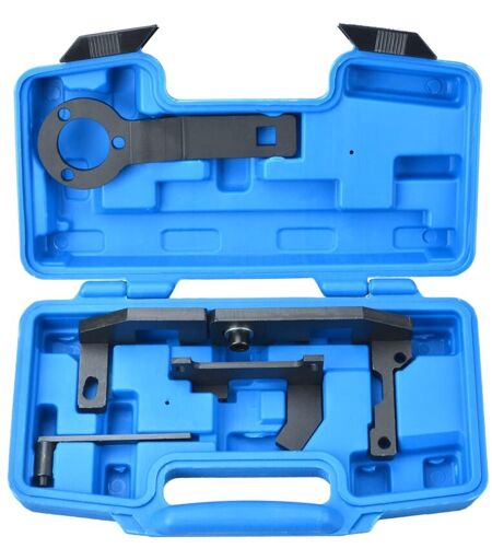 DOMAINE D'APPLICATION : Kit d'outils de calage moteur pour Citroen - C3 III (12-15), C4 Cactus (14-15), C-Elysee (12-15), DS3 (12-15) pour Peugeot - 108 (14-15) ), 208 (12-15), 308 (13-15), 2008 (13-15) Codes moteur : 1.0 VTi - EBO(ZMZ), ZMZ(EBO) 1.2 VTi - EB2(HMZ) EXCELLENTES PERFORMANCES : kit d'outils de synchronisation du moteur contient les outils essentiels nécessaires pour le remplacement de la courroie de distribution sur les moteurs à essence à trois cylindres à entraînement par courroie PSA 1.0 et 1.2 VTi Pure-Tech. AVANTAGES DU PRODUIT: Kit d'outils de synchronisation du moteur conçu pour verrouiller les arbres à cames dans leur position de synchronisation requise, accompagner votre conduite et assurer votre sécurité FACILE À UTILISER : outils de verrouillage de vilebrequin d'arbre à cames de moteur fournis dans une mallette de transport moulée par soufflage, pratique et portable. Description du produit Descriptifs : Pour Citroen - C3 III (12-15), C4 Cactus (14-15), ...