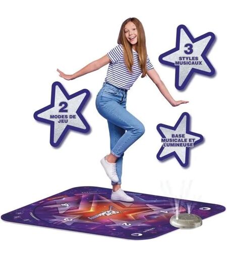 Tapis de danse Star Academy : Devenez le roi ou la reine de la piste ! Le tapis de danse Star Academy est votre partenaire idéal pour réaliser des chorégraphies inoubliables. Suivez les indications lumineuses et sonores et apprenez à danser comme un véritable professionnel. Fonctionnalités 2 modes de jeu : mode entraînement et mode performance 3 niveaux de danse pour s'adapter à votre progression 3 styles musicaux pour varier les plaisirs Caractéristiques Dimensions : 88 x 88 cm Âge recommandé : Dès 6 ans Garantie : 2 ans Que vous soyez débutant ou que vous souhaitiez perfectionner votre style, ce tapis de danse vous accompagnera à chaque étape de votre apprentissage. Préparez-vous à briller ! ...