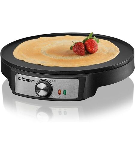 ASFASFq-Cloer 6620 Crêpière, pour crêpes sucrées ou salées d'un diamètre de 29 cm, 1200 W, revêtement antiadhésif, avec épandeur de pâte et tourne-crêpes, noir