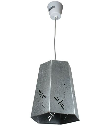 Suspension métallique composé d'un abat-jour hexagonal avec perforations aux motifs de libellules. Caractéristiques de la suspension : Matière de la suspension : Métal Couleur : Gris industriel Dimensions : 22 x 25 cm (diamètre x hauteur) Ampoule conseillée (non fournie) : E27 Ampoule non fournie Câble de suspension Ce que nous aimons : Cette suspension en métal gris très moderne s'inscrit dans la tendance actuelle de la déco industrielle. La finition métal gris aux motifs de libellules lui confère une élégance particulière et sera un atout design pour votre chambre, salon, cuisine ou couloir. Cette suspension en métal est très facile à monter et peut être compatible avec les ampoules à économie d'énergie ...